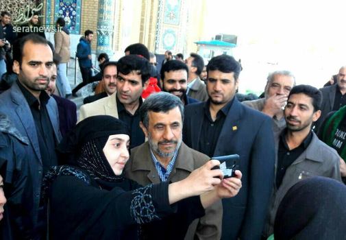 عکس سلفی یک دختر با احمدی نژاد در جمکران