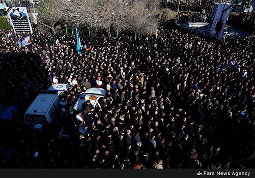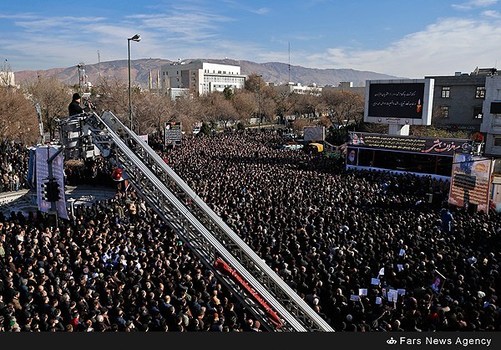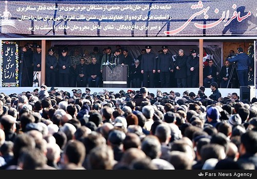 مراسم تشییع پیکر جانباختگان حادثه دلخراش برخورد قطار مسافری تبریز - مشهد، زائران رضوی صبح چهارشنبه دهم آذر در میدان شهداء تبریز در حال برگزاری است.