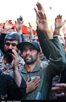 صراط: تصاویری از شهید بهمن مصائبی در مراسم تشییع فرمانده شهیدش منتشر شد.