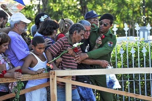 خاکستر "فیدل کاسترو" رهبر فقید انقلاب کوبا پس از بدرقه مردم هاوانا به شهر سانتیاگو دِ کوبا رسید و در قبرستان سانتا ایفیخنیا در کنار قبر "خوزه مارتی" قهرمان استقلال کوبا، دفن شد. کاسترو 5 آذر در سن 90 سالگی در شهر هاوانا درگذشت. مراسم تدفین او بدون حضور رسانهها و تنها با حضور اعضای خانوادهاش برگزار شد.