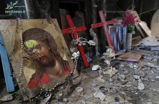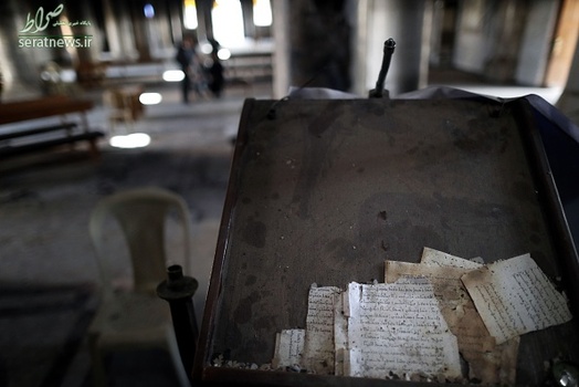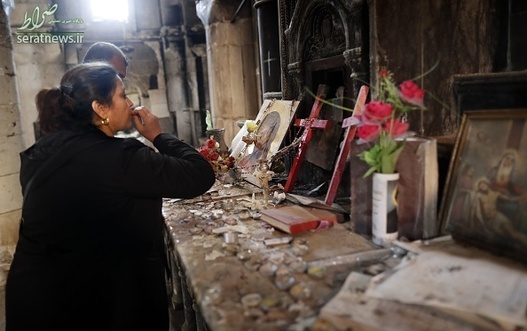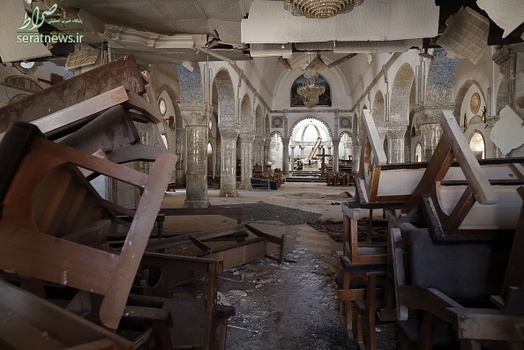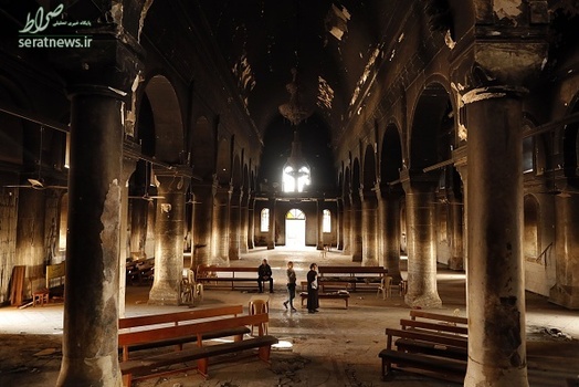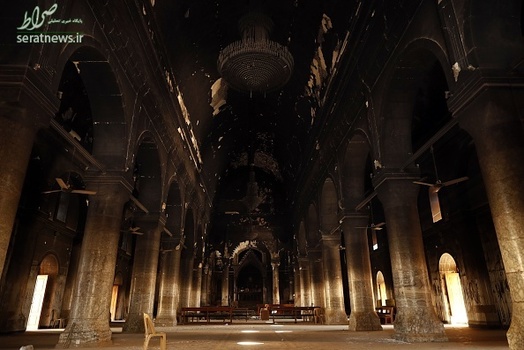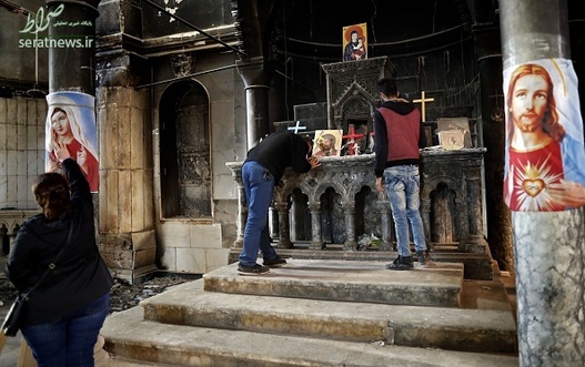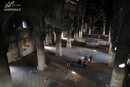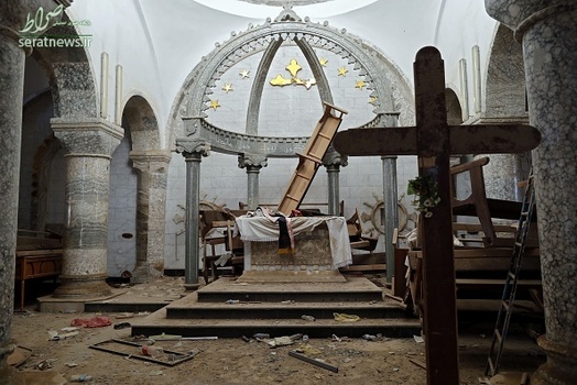 کلیسای شهر مسیحی نشین قراقوش در شرق موصل که به تازگی در عملیات مشترک نیروهای ارتش و مردمی عراق از دست گروه تروریستی داعش آزاد شده به شدت آسیب دیده است.