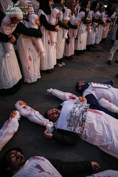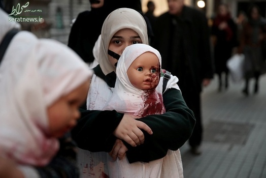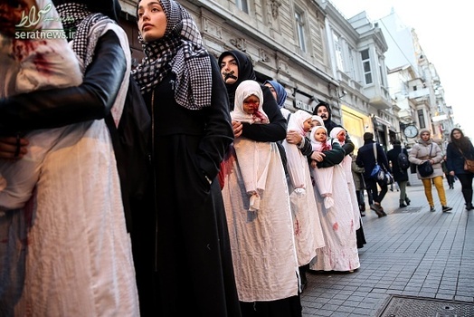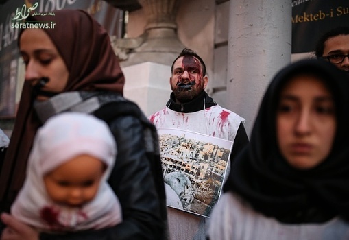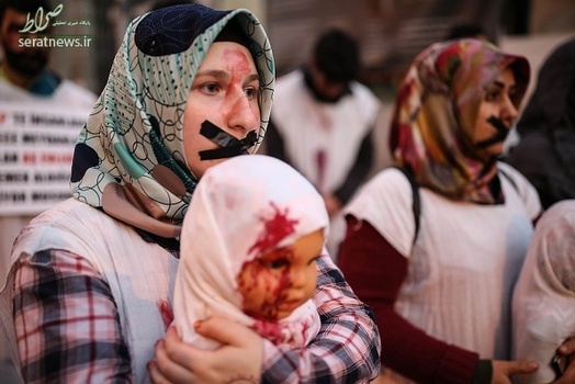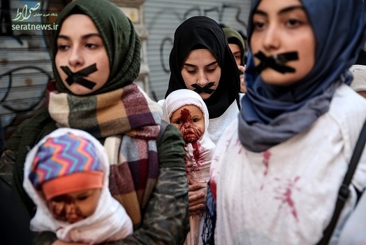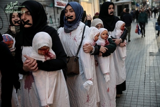 گروهی از زنان و مردان ترکیه ای با برگزاری تظاهرات در خیابان استقلال استانبول به جنگ داخلی سوریه و کشتار غیرنظامیان در شهر حلب اعتراض کردند. آنان در حالی که کفن پوشیده و به دهان خود چسب زده بودند به صورت نمادین یک عروسک خونین در کفن به دست داشتند.