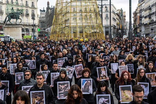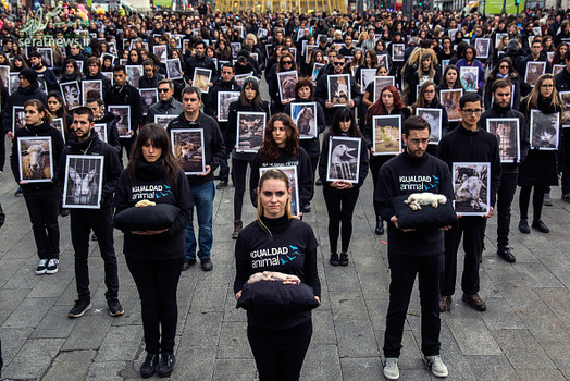 به مناسبت روز جهانی حقوق بشر گروهی از فعالان حقوق حیوانات در شهر مادرید اسپانیا دست به تظاهرات زده و خواستار توجه جهانی و بین المللی به حیوانات شدند. معترضان مشکی پوش که تصاویر و اجساد حیوانات را در دست داشتند به استفاده از حیوانات در آزمایشات کشنده نیز اعتراض کردند.