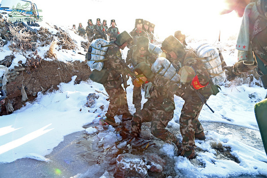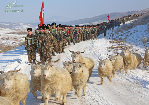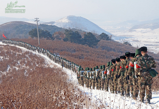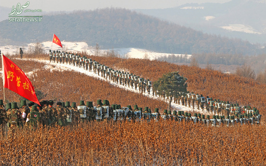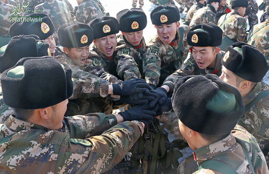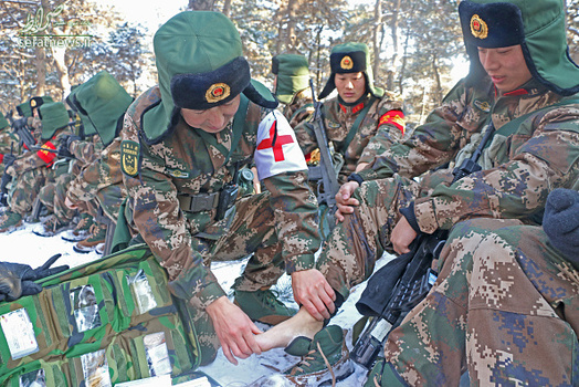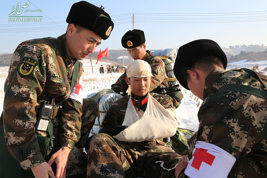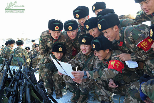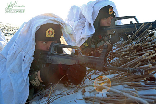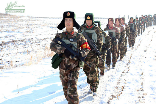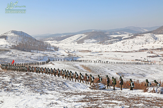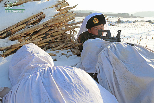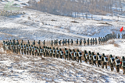 یک گروه از پلیسهایی که به تازگی به استخدام نیروهای مسلح در چین درآمدهاند در برف و سرمای 20 درجه سانتیگراد زیر صفر در  منطقه فوشان در استان لیائونینگ آموزش نظامی میبیننند.
