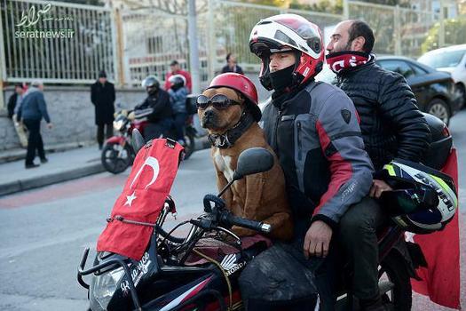 یک سگ موتورسوار با صاحبش در تظاهرات اعتراضی به انفجارهای مرگبار استانبول شرکت کرد. در اقدام تروریستی در شهر استانبول که به دنبال بازی فوتبال تیمهای بشیکتاش و بورسا اسپور علیه نیروی ضربتی پلیس صورت گرفت، 38 نفر کشته و 155 نفر نیز زخمی شدند. سازمان عقابهای آزادی کردستان(تاک) که از شاخه های مسلح حزب کارگران کردستان (پ.ک.ک) است، مسئولیت این انفجارها را بر عهده گرفته است.