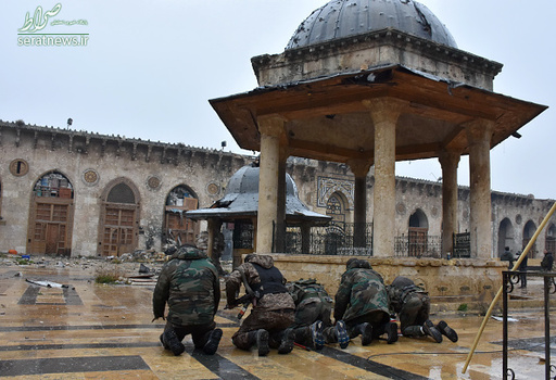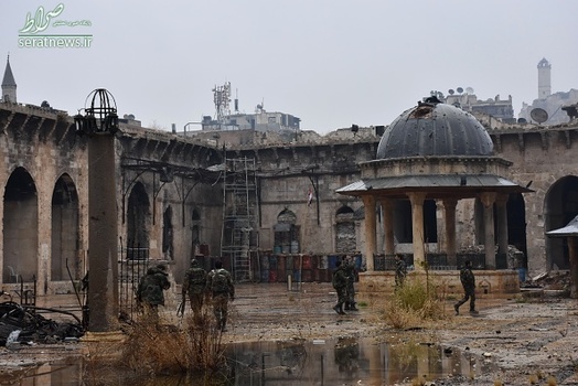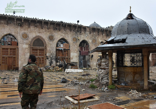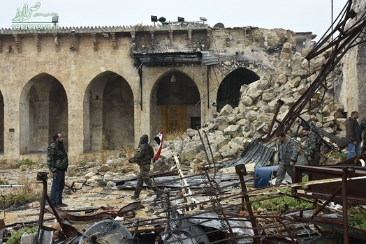 نیروهای ارتش سوریه و رزمندگان مقاومت مسجد جامع اموی حلب را که یکی از نمادهای این شهر است. نیروهای ارتش سوریه وارد مسجد جامع اموی در اطراف قلعه حلب در منطقه قدیمی حلب شدند و امنیت را در اطراف این قلعه برقرار کردند. تروریستها مسجد بزرگ اموی را به یک اردوگاه نظامی تبدیل کرده بودند و بخشهای مختلف این مسجد سنگربندی شده است. گروه لواء التوحید به فرماندهی عبدالقادر صالح در سال 2012 پس از ورود به مسجد اموی بخشهایی از آن را آتش زدند. عبدالقادر صالح حدود یک سال پیش در حمله هوایی ارتش سوریه در حلب کشته شد. این مسجد دارای صحن تاریخی است که یکی از نمادهای شهر حلب محسوب می شود و مربوط به حدود ده قرن پیش است. در 1400 سال گذشته، صدای اذان در مسجد اموی حلب هیچ گاه به جز زمانی که تروریستهای تکفیری به این شهر حمله کردند، قطع نشده بود.