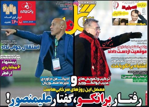صفحه اول روزنامه های ورزشی یکشنبه‌ ۲۸ آذر