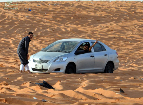 جوانان عربستانی در بیابان الثمامه در شمال ریاض پایتخت این کشور در رقابت های  آفرود شرکت کردند. آفرود گونهای از مسابقات اتومبیل رانی هستند که در پیستهای دارای عوارض دشوار طبیعی برگزار میشوند.