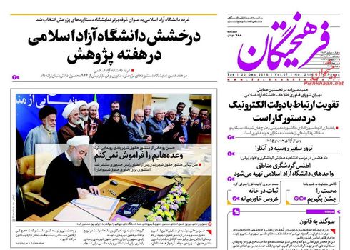 صفحه اول روزنامه های سهشنبه ۳۰ آذر