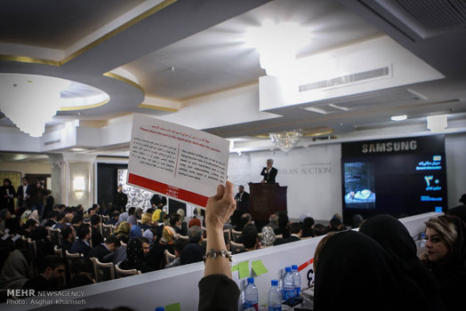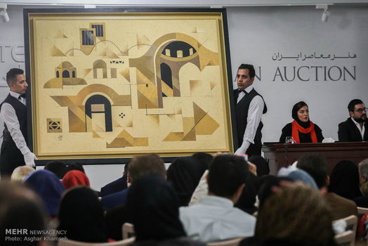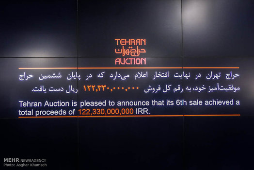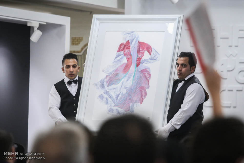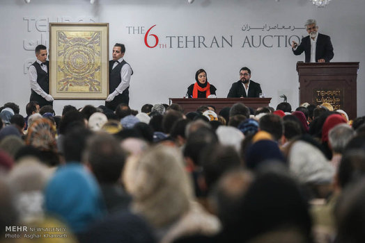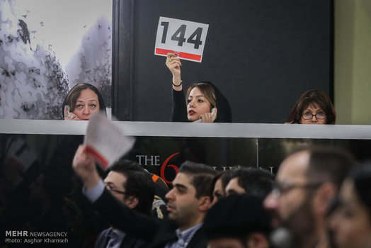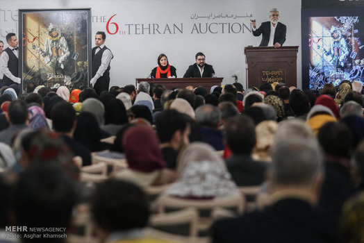 آثار هنری ششمین حراج تهران ویژه هنرمندان معاصر ایران شامگاه جمعه با حضور احمد مسجدجامعی عضو شورای اسلامی شهر تهران و علی مرادخانی معاون وزارت فرهنگ و ارشاد اسلامی و سیدمحمد بهشتی در هتل اسپیناس چکش خوردند.