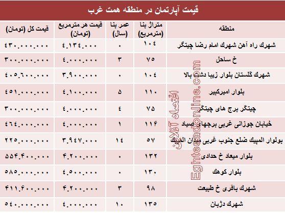 جدول/ قیمت خرید آپارتمان حوالی دریاچه چیتگر