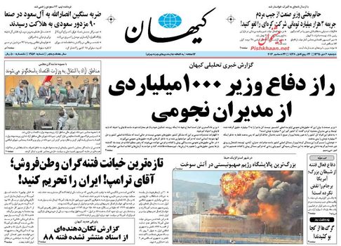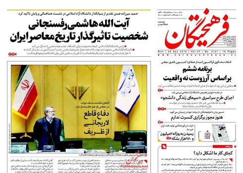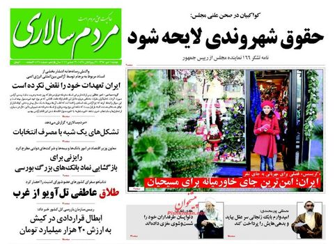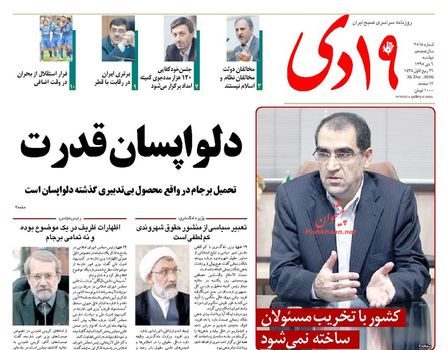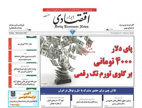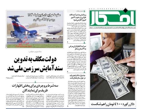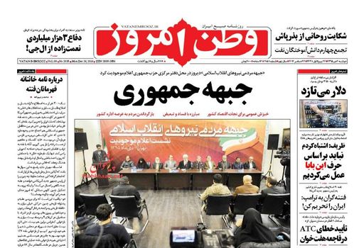 صفحه اول روزنامه های دوشنبه ۶ دی