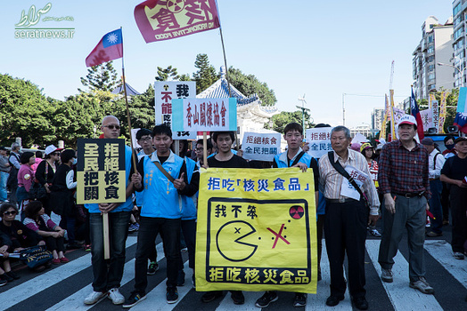 صدها نفر از مردم تایوان در اعتراض به واردات مواد غذایی از فوکوشیمای ژاپن دست به تظاهرات زدند. تایوانی‌ها می‌گویند فوکوشیما منطقه آلوده هسته‌ای است.