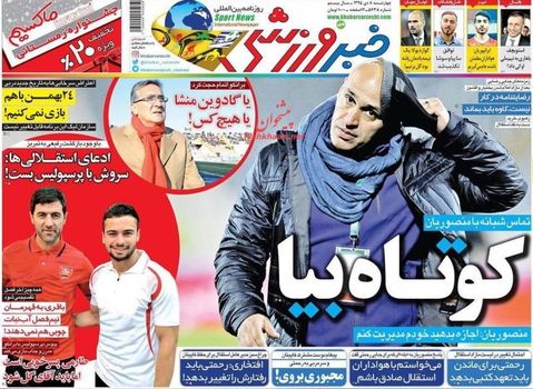 صفحه اول روزنامه های ورزشی چهارشنبه ۸ دی