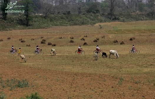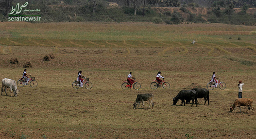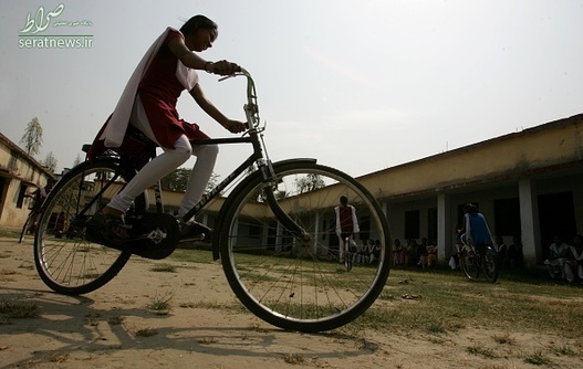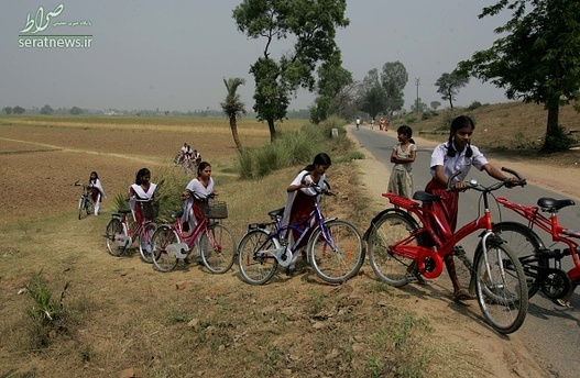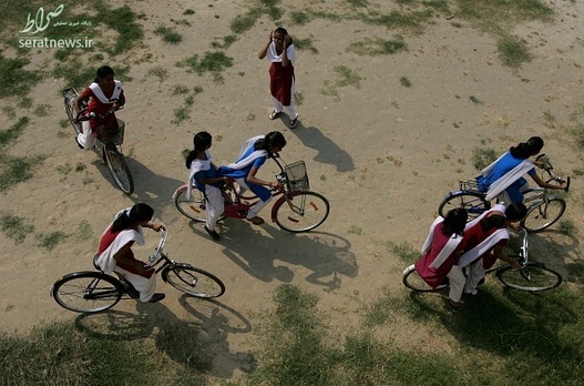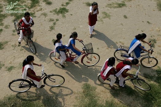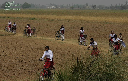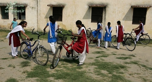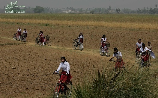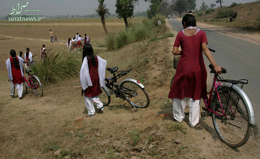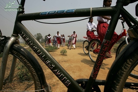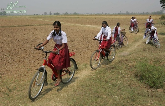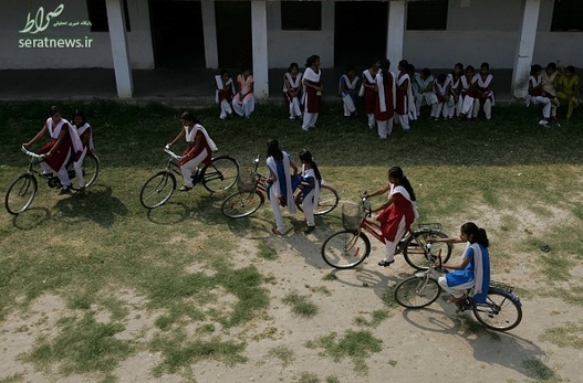 دختران دانش آموز مقطع 9 و 10 در منطقه بیهار شریف هند با دوچرخه به مدرسه می روند.