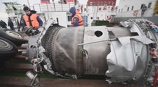 لاشه هواپیمای مسافربری توپولوف 154 روسیه که با 92 مسافر یکشنبه گذشته در دریای سیاه سقوط کرد از آب بیرون کشیده شد.
