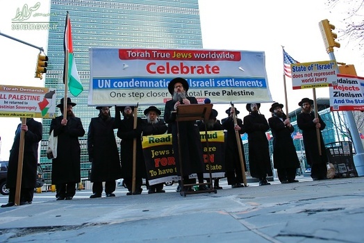 دهها تن از یهودیان ارتدکس با اجتماع مقابل مقر سازمان ملل در نیویورک، از تصویب قطعنامهاخیر شورای امنیت سازمان ملل در محکومیت شهرکسازی غیرقانونی رژیم صهیونیستی در سرزمینهای اشغالی فلسطینی استقبال کردند. شرکت کنندگان در این اجتماع خواستار پایان فوری موجودیت اسرائیل و پس دادن سرزمینهای اشغالی به فلسطینیان شدند. شورای امنیت سازمان ملل هفته گذشته قطعنامه توقف فوری فعالیتهای شهرکسازی رژیم صهیونیستی در اراضی اشغالی فلسطینیان را با 14 رأی موافق و یک رأی ممتنع آمریکا تصویب کرد.