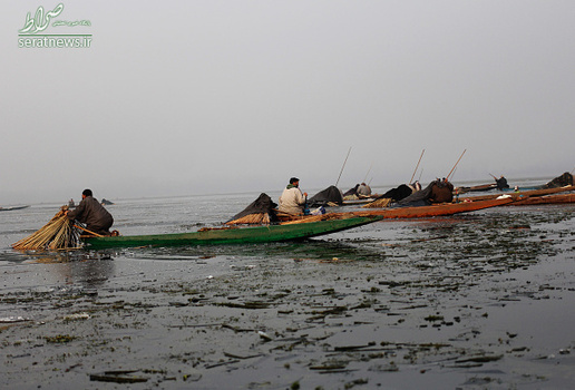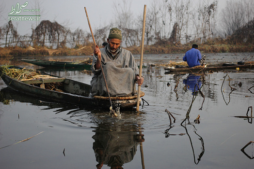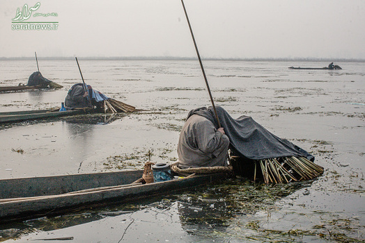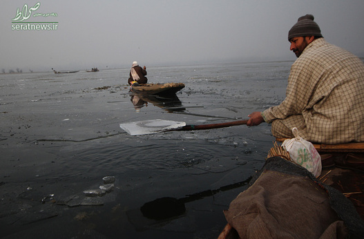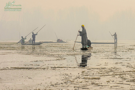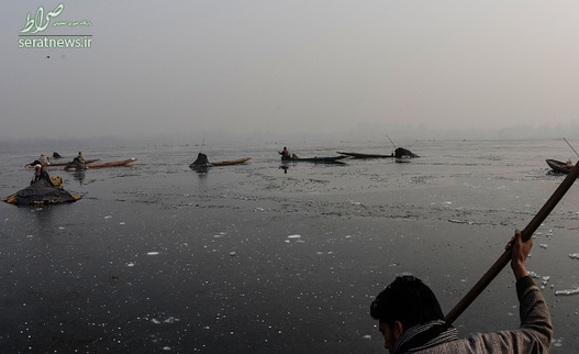 در سرمای این روزهای کشمیر که آب دریاچه این منطقه تا حدودی منجمد شده است ماهیگیریان با استفاده از پتو و نی به صید ماهی میروند. آنان با رفتن به زیر پتو و تشکیل یک سرپناه با استفاده از نی برای ماهی، آنان را صید میکنند.