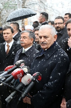 بنعلی یلدریم نخست وزیر ترکیه روز گذشته نماز جمعه را در مسجد باربارس واقع در خیابان بلقاد آنکارا اقامه کرد و پس از خروج از مسجد در هوای برفی آنکارا با رسانهها گفتگو کرد.