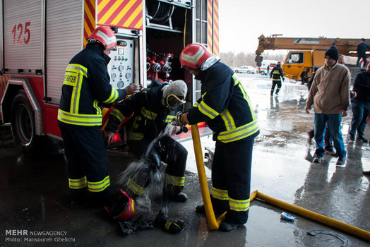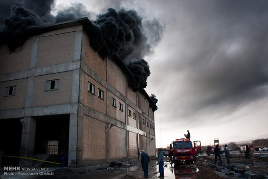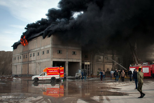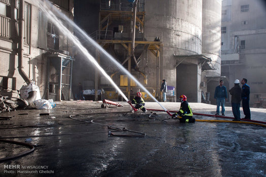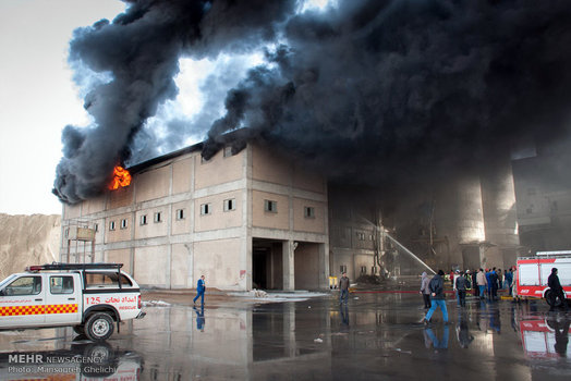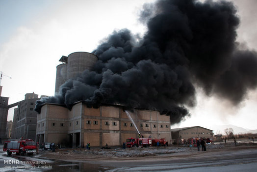 تصاویر/ آتش سوزی کارخانه سیمان شاهرود