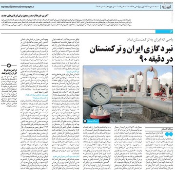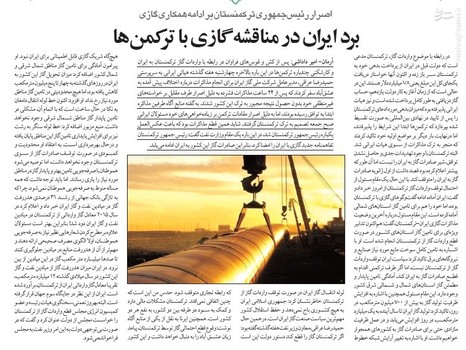 در ادامه نمونه‌ای از نحوه انعکاس نتیجه مذاکرات گازی با ترکمنستان را در رسانه‌های زنجیره‌ای مشاهده می‌کنید.