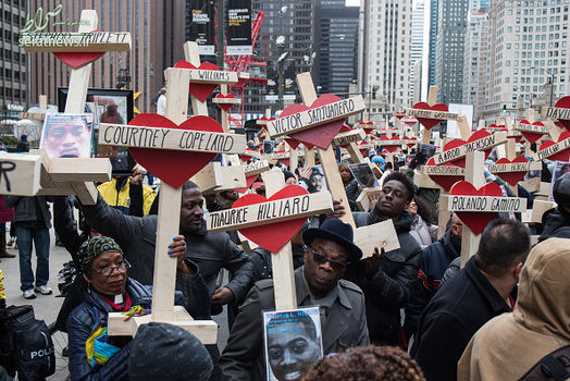 صدها نفر از سیاهپوستان و سفیدپوستان آمریکایی با برگزاری تظاهراتی علیه خشونت نیروهای پلیس آمریکا علیه سیاهپوستان یاد آنان را گرامی داشتند. در این تظاهرات که در شیکاگو برگزار شد هر یک از راهپیمایان یک صلیب به دست داشتند که بر روی آن یک قلب و نام سیاهپوست کشته شده نوشته شده بود. خشونت علیه سیاهپوستان در آمریکا 57 درصد افزایش یافته است. در سال 2016 بیش از 4 هزار مورد در شیکاگو صورت گرفته که منجر به کشته شدن بیش از 700 نفر شده است.