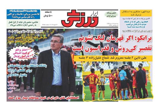 صفحه اول روزنامه های ورزشی سهشنبه ۱۴ دی