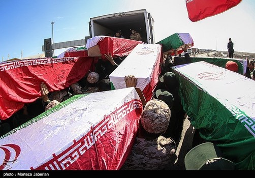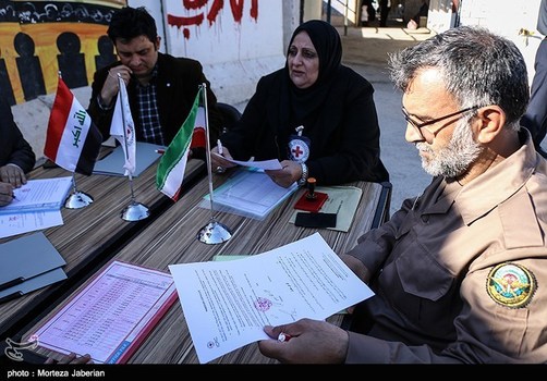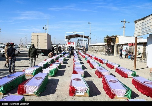 تصاویر/ ورود پیکر ۹۸ شهید دفاع مقدس از مرز شلمچه