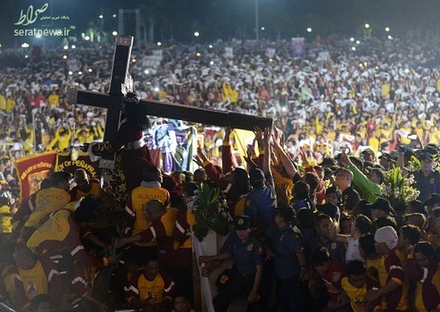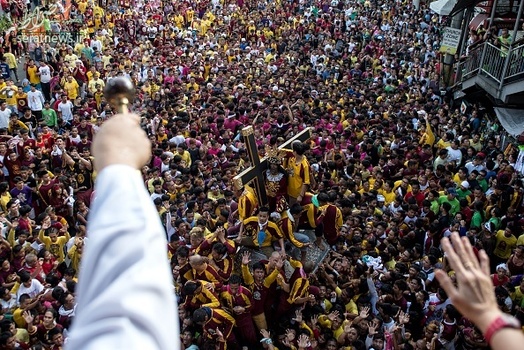 آیین جشن مذهبی "ناصری سیاه" کاتولیکها در مانیل پایتخت فیلیپین برگزار شد. صدها هزار کاتولیک در این مراسم شرکت کردند و دور مجسمه بلک نزارین یا عیسی ناصری سیاه گردیدند تا بلکه بتوانند آن را لمس کنند.