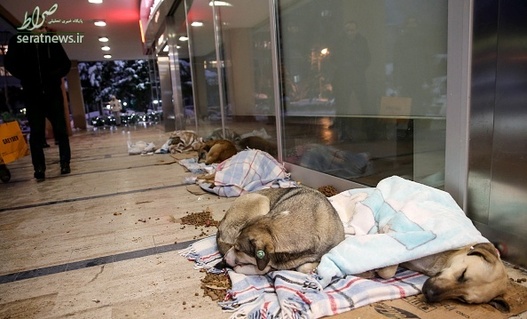 در ورودی یک مرکز خرید در منطقه باقرکوی استانبول ترکیه سگهای ولگرد اسکان داده شدهاند. گروهی از شهروندان این منطقه با تهیه پتو و غذا به سگهای ولگرد کمک کردند تا در شبهای سرد زمستان در این مکان شب را به روز برسانند.