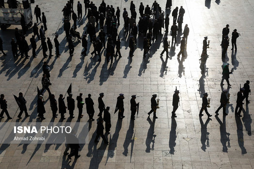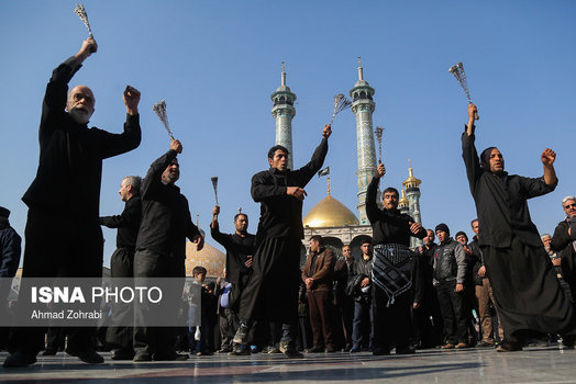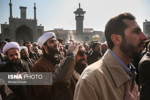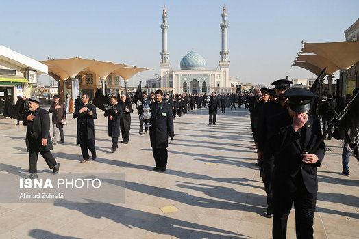 خادمان حرم حضرت فاطمه معصومه(س) در دهم ربیع الثانی سالروز وفات کریمه اهل بیت(ع) از بیت النور محل اقامت آن بانوی گرامی در قم به سمت حرم حضرت معصومه(س) حرکت و به همراه مردم به عزاداری پرداختند.