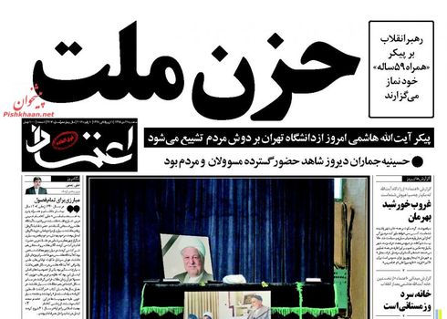 صفحه اول روزنامه های سه‌شنبه ۲۱ دی