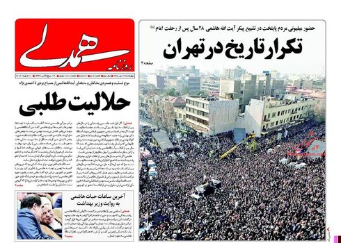 تصاویر/ تیتر روزنامههای ۲۲ دی برای تشییع هاشمی