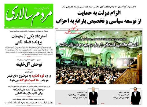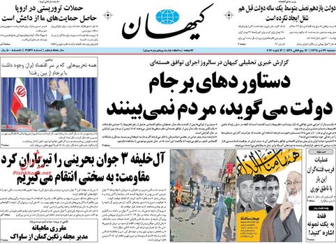 صفحه اول روزنامه های دوشنبه ۲۷ دی