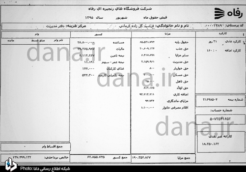 فیش حقوقی مدیرعامل شرکت فروشگاه‌های زنجیره‌ای رفاه نشان می‌هد که وی رقمی بالغ بر 24 میلیون تومان به صورت ماهیانه دریافتی دارد.