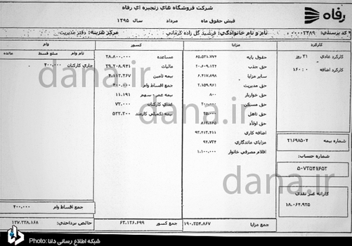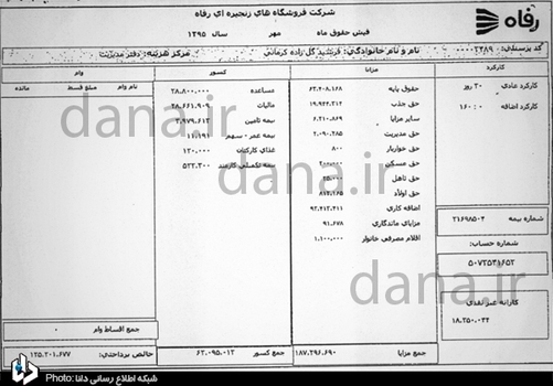 صراط: فیش حقوقی مدیرعامل شرکت فروشگاه‌های زنجیره‌ای رفاه نشان می‌هد که وی رقمی بالغ بر 24 میلیون تومان به صورت ماهیانه دریافتی دارد.