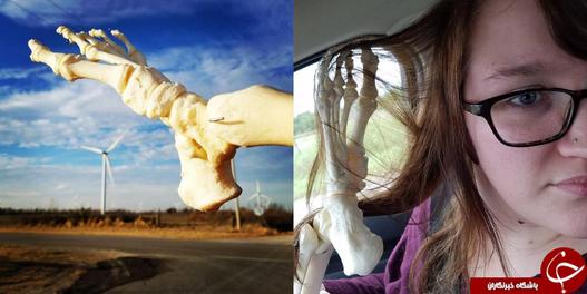 زن جوانی که بخاطر بیماری سرطان یک پای خود را از دست داده بود سعی کرد تا از وضعیت موجود بهترین استفاده را کند. او از پزشکان خواست تا پای قطع شده را به او برگردانند، سپس استخوان ها را تمیز و عضو بی جان را تبدیل به یک مجسمه سیار برای خود کرد. حالا او همراه با اسکلت پایش به سفرهای متعدد می رود و به زندگی عادی خود ادامه می دهد. بعلاوه اینکه گرفتن سلفی کنار استخوان پایش به یکی از کارهای مورد علاقه او تبدیل شده است. او هدف خود را از این کار دادن روحیه به دیگران و حفظ شادابی در بدترین شرایط عنوان می کند.