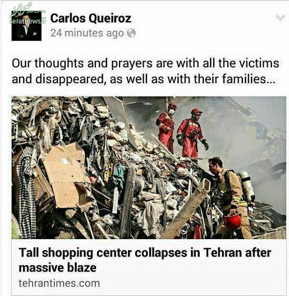 عکس/ واکنش کیروش به حادثه ساختمان پلاسکو