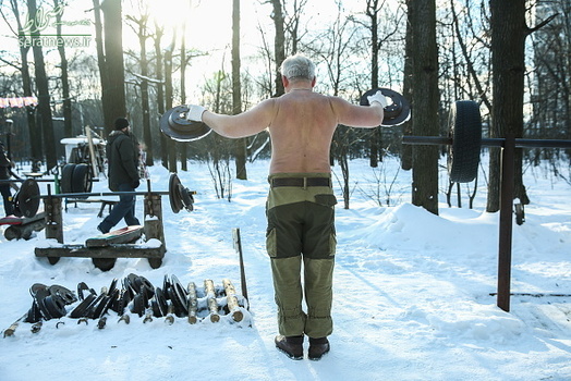 تصاویر/ تمرین بدنسازی زنان و مردان در سرمای زیر صفر درجه