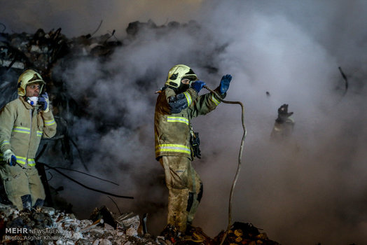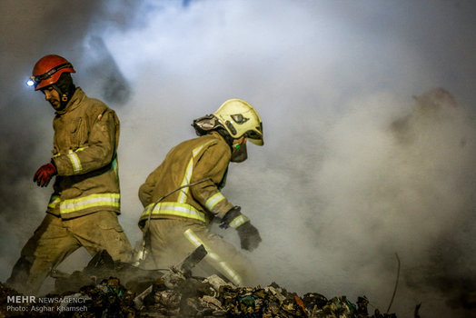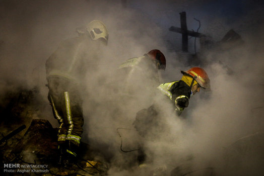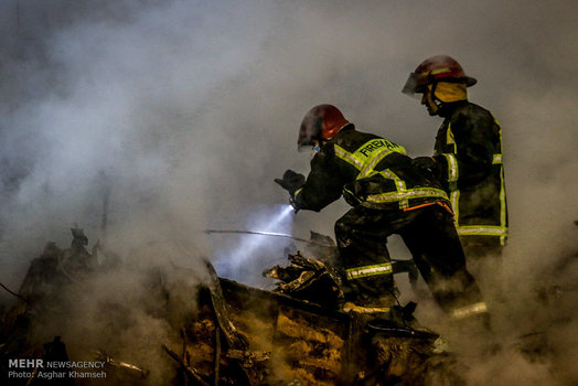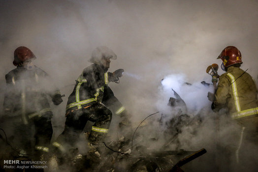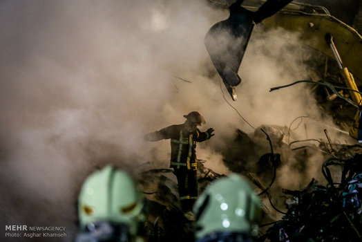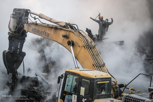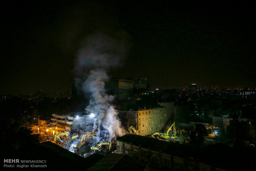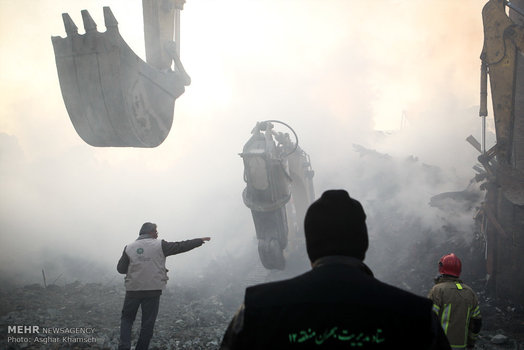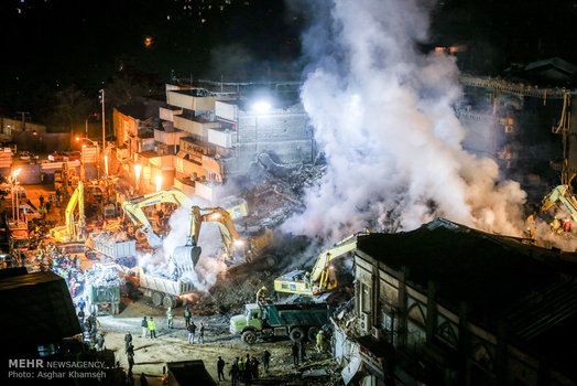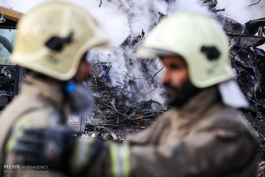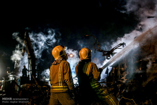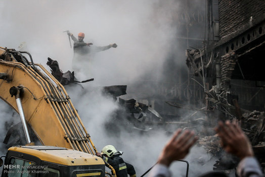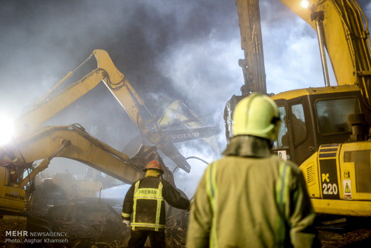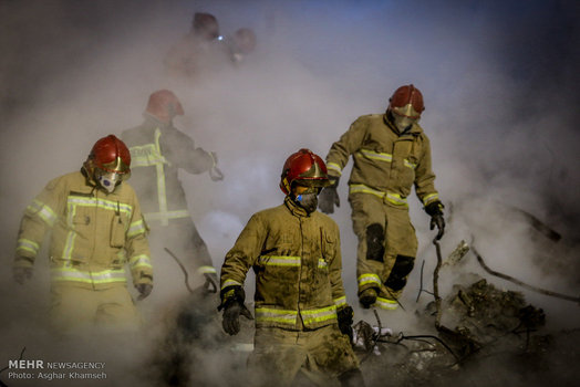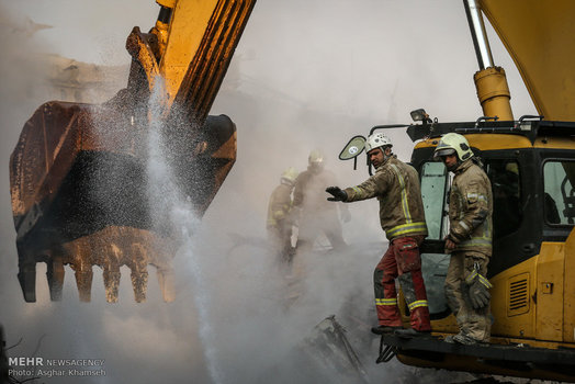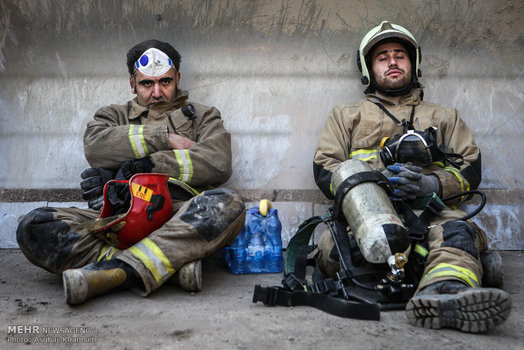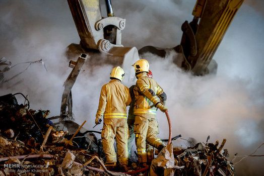 همچنان تلاش های آتش نشانان برای خارج کردن آوارها و پیکرهای همکارانشان در روز پنجم ادامه دارد.