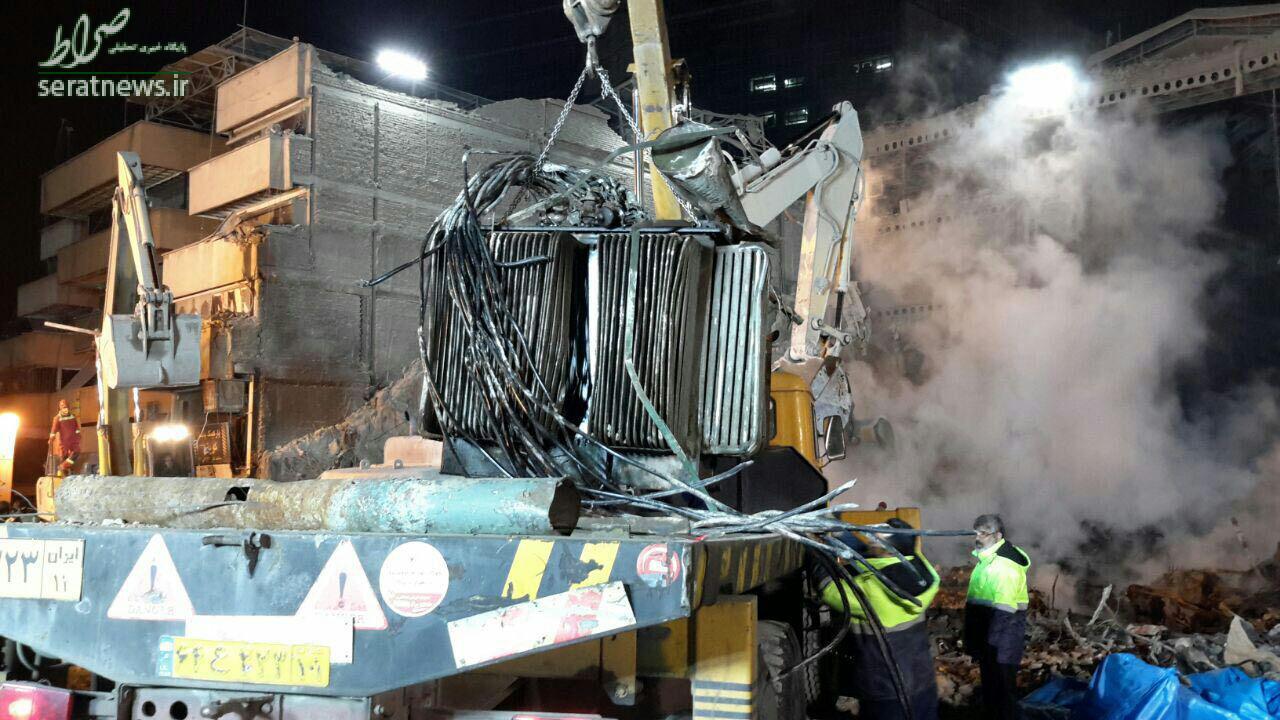 عکس/ خروج گاوصندوق گداخته از زیر آوار پلاسکو