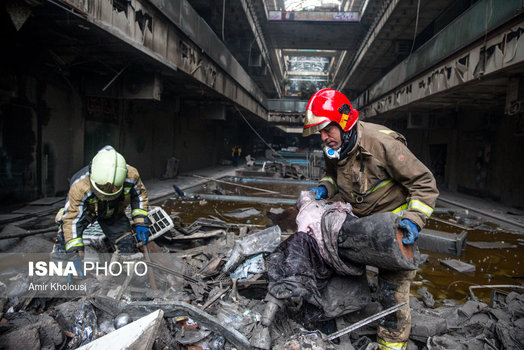 امروز جمعه ۸ بهمن - نهمین روز پس از حادثه پلاسکو آتشنشانان و تیم های امدادی همچنان در حال جستجو و آواربرداری هستند.