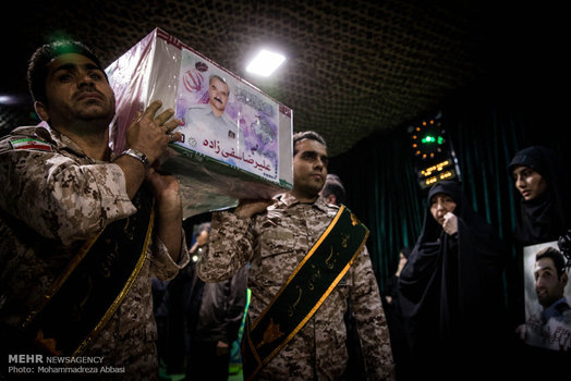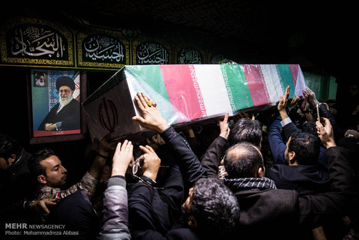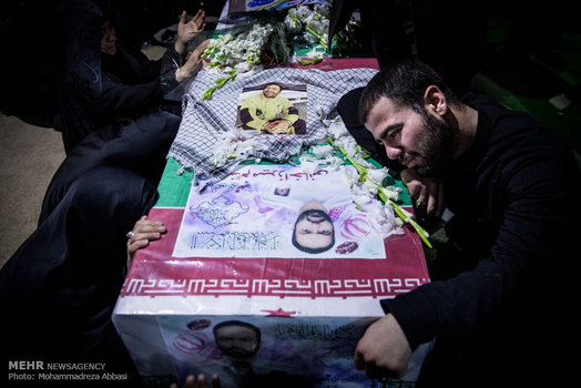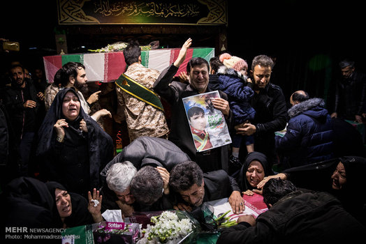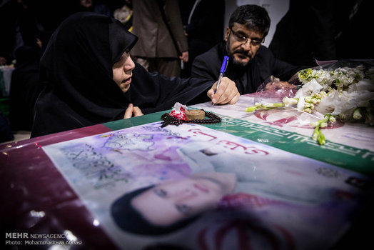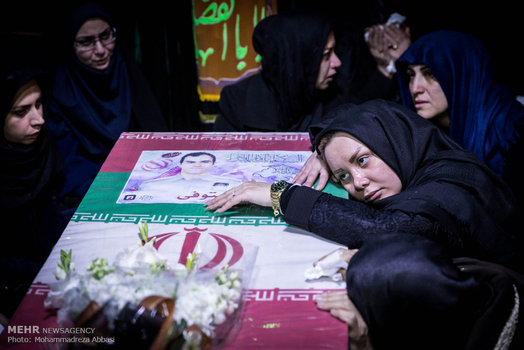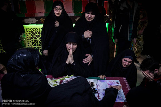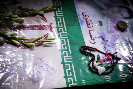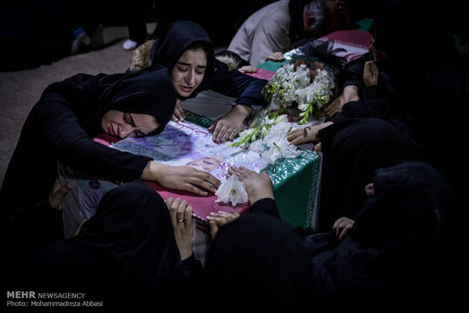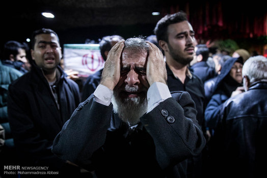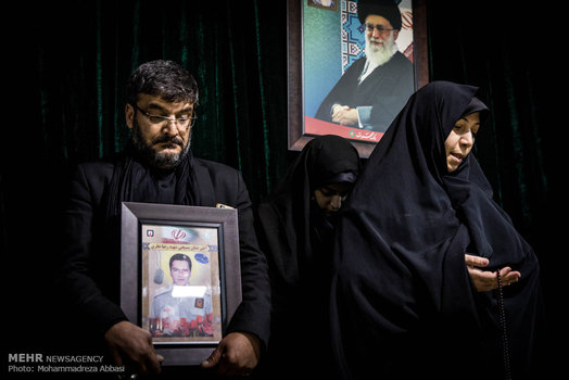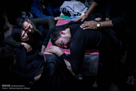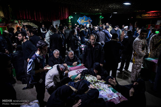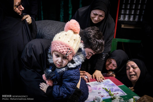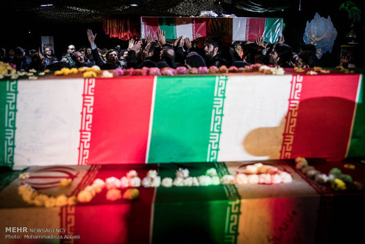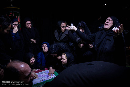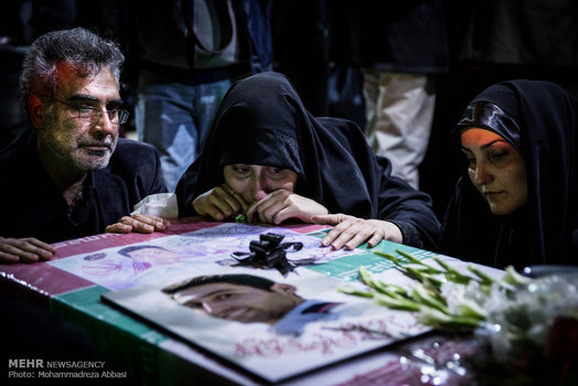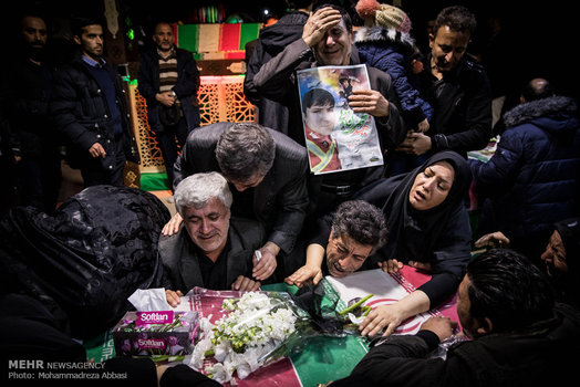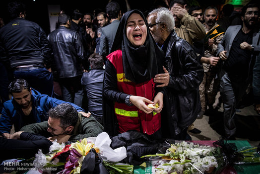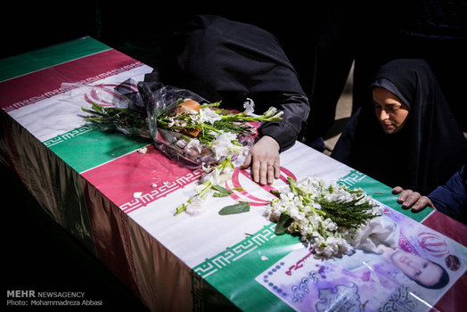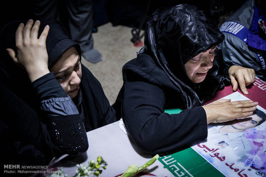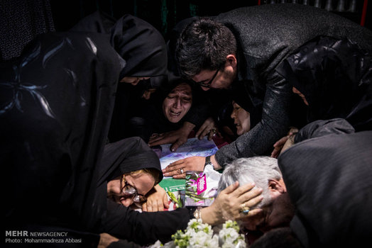 مراسم وداع با پیکر آتش نشانان شهید حادثه پلاسکو شامگاه یکشنبه با حضور خانواده های شهدای آتش نشان در معراج شهدا برگزار شد.
