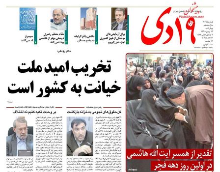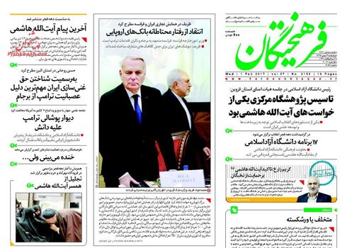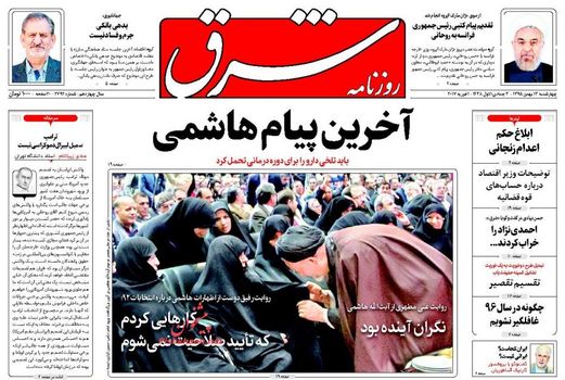 صفحه اول روزنامه های چهارشنبه ۱۳ بهمن