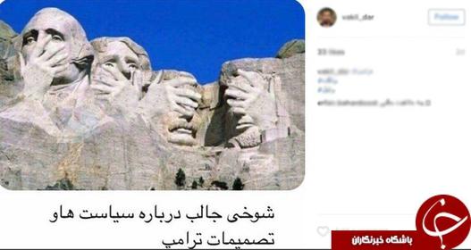در پی تصمیم گیری ها و اقدامات نابخردانه دونالد ترامپ رئیس جمهور آمریکا،مخصوصا آخرین اقدامش،ممنوعیت ورود اتباع کشورهای اسلامی به آمریکا، سیل کثیری از مردم سراسر جهان به این اتفاقات واکنش نشان دادند که این اعتراضات از خیابان ها به شبکه های اجتماعی مختلف از جمله «اینستاگرام» هم کشیده شد که در این خبر می توانید جالب ترین آن ها را مشاهده کنید.همچنین در انتهای این خبر یک ویدئوی جالب قرار داده شده که شما را از آخر و عاقبت ناخوشی که به خاطر اقدامات زشت و زننده ترامپ در انتظار اوست آگاه می سازد.