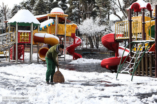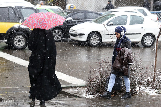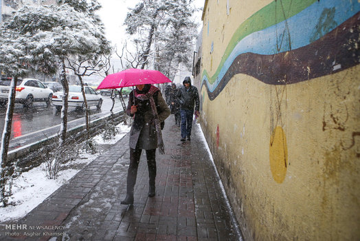 بارش برف صبح امروز پنجشبه در تهران بسیاری از مناطق را سپید پوش کرد