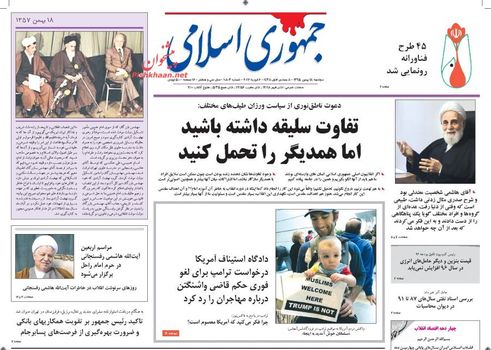 صفحه اول روزنامه های دوشنبه ۱۸ بهمن