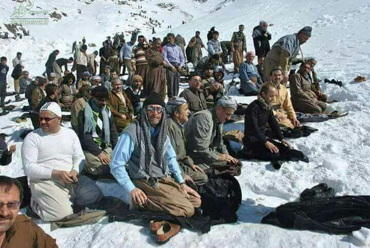 عکس/ نماز جماعت كولبران كرد در برف و سرما