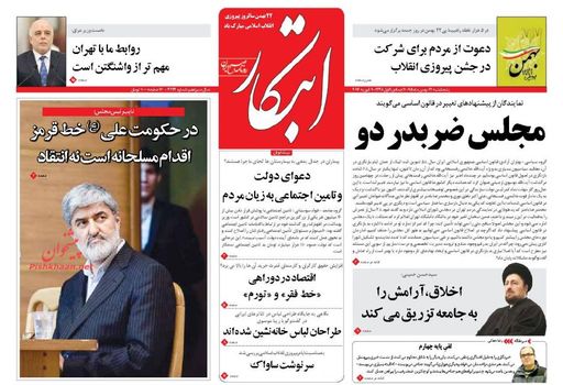 صفحه اول روزنامه های پنجشنبه ۲۱ بهمن