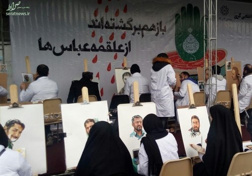 نمایشگاهی در میدان فردوسی تهران برای نقاشی تصاویر شهدای مدافع حرم در برپا شده است